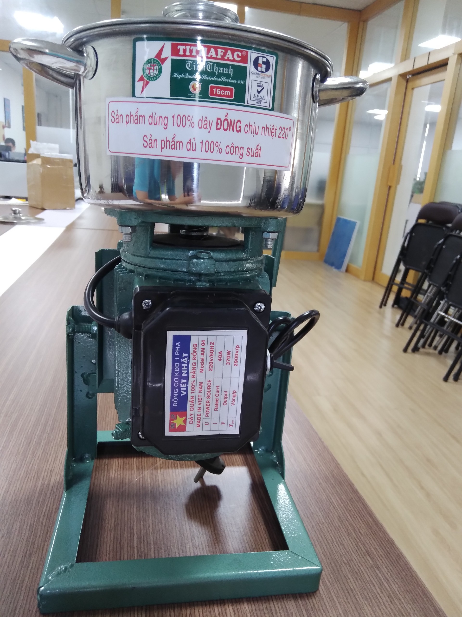 – Cắm nguồn điện vào và bật công tắc lên và bắt đầu xay.